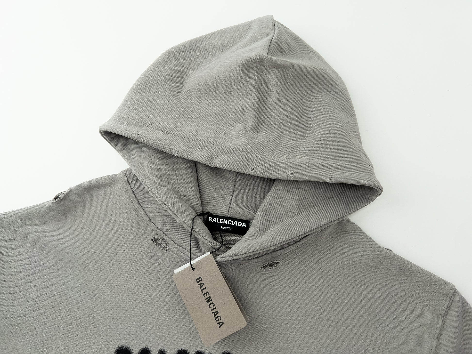BALENCIAGA EXTRA LARGE GRAFITED LOGO GREY HOODIE