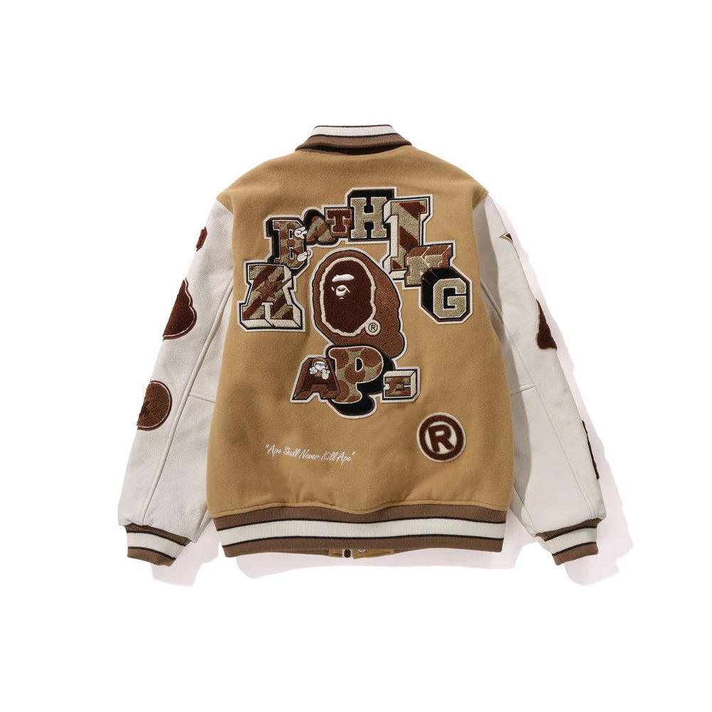 BAPE MULTI MOTIF BEIGE VARSITY JACKET